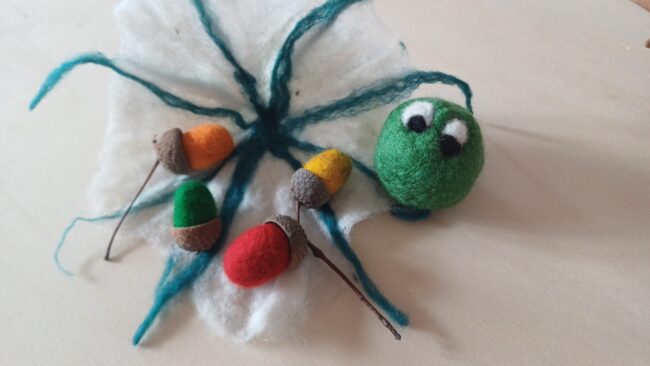 Das Nassfilzen mit Schafwolle ist ein sinnliches und kreatives Erlebnis. In diesem Familien-Workshop können bunte Objekte wie Blumen, Früchte, Schmuckperlen und viele weiter Objekte gefilzt werden.