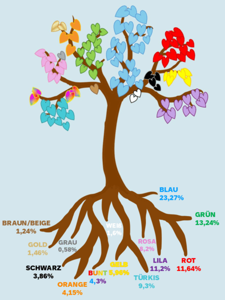 Die genauen Ergebnisse und ein paar besonders schöne Begründungen für die persönliche Lieblingsfarbe könnt Ihr Euch hier noch einmal genauer anschauen.